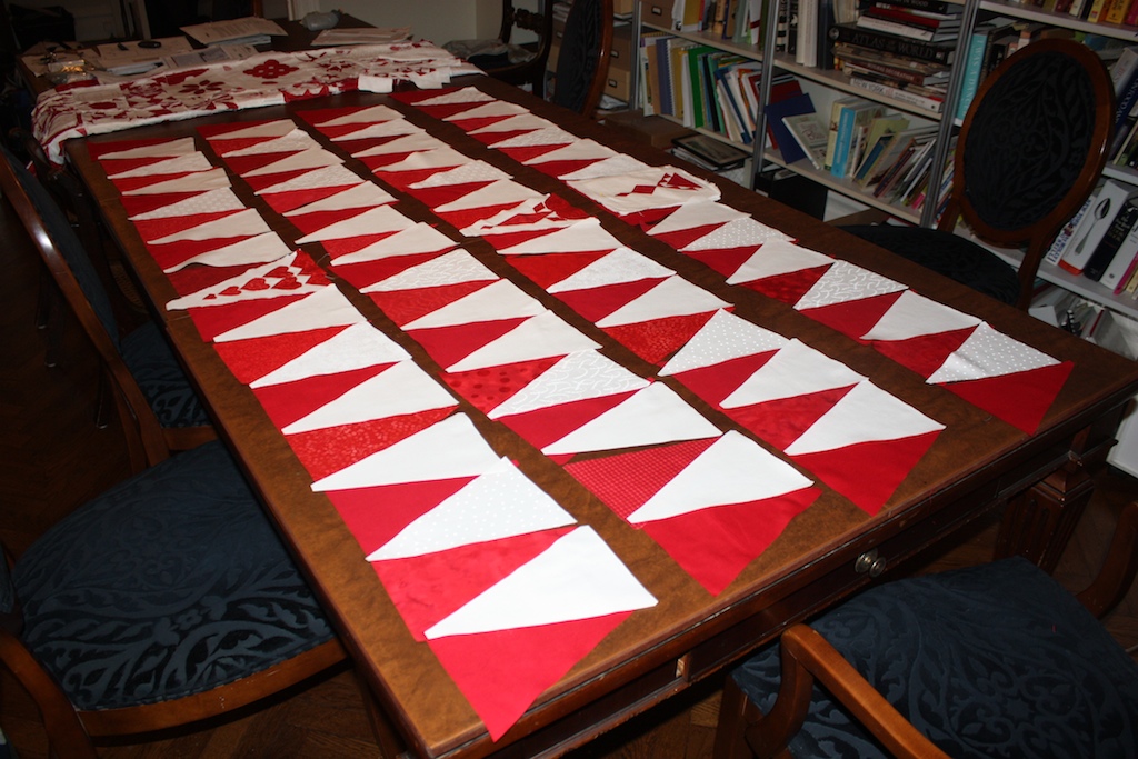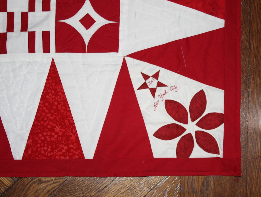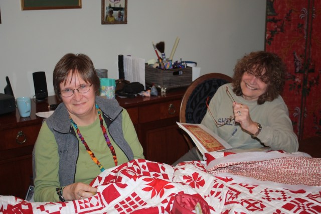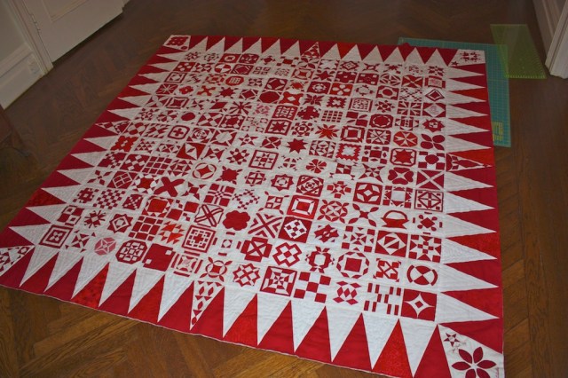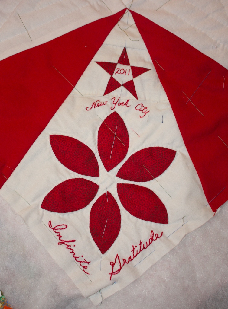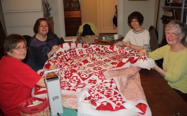 When I get a moment I’ll take and post some pictures of the gorgeous detail quilting done this weekend. Rosebuds, fans, tic-tac-toe boards, and more now embellish our quilt!